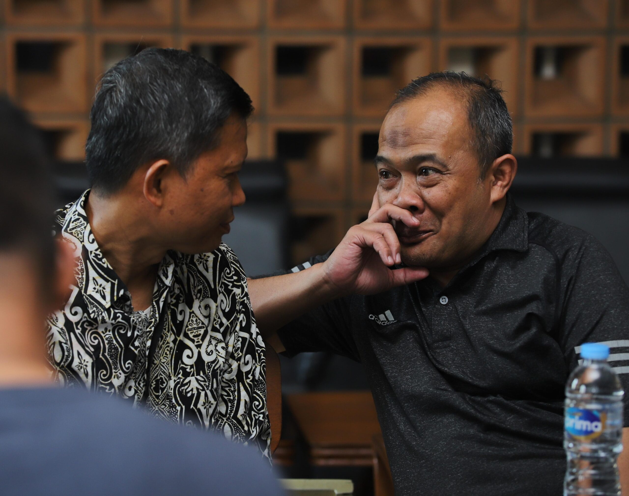 Liat abah rebahan di lantai kayu studio, suasana langsung Awkward, wkwkwk. kitanya segan, hormat, respek, eh Abahnya merasa santai, simpel, akrab. Ga lama sih, abis tu sudah menunggu rapat DPTW