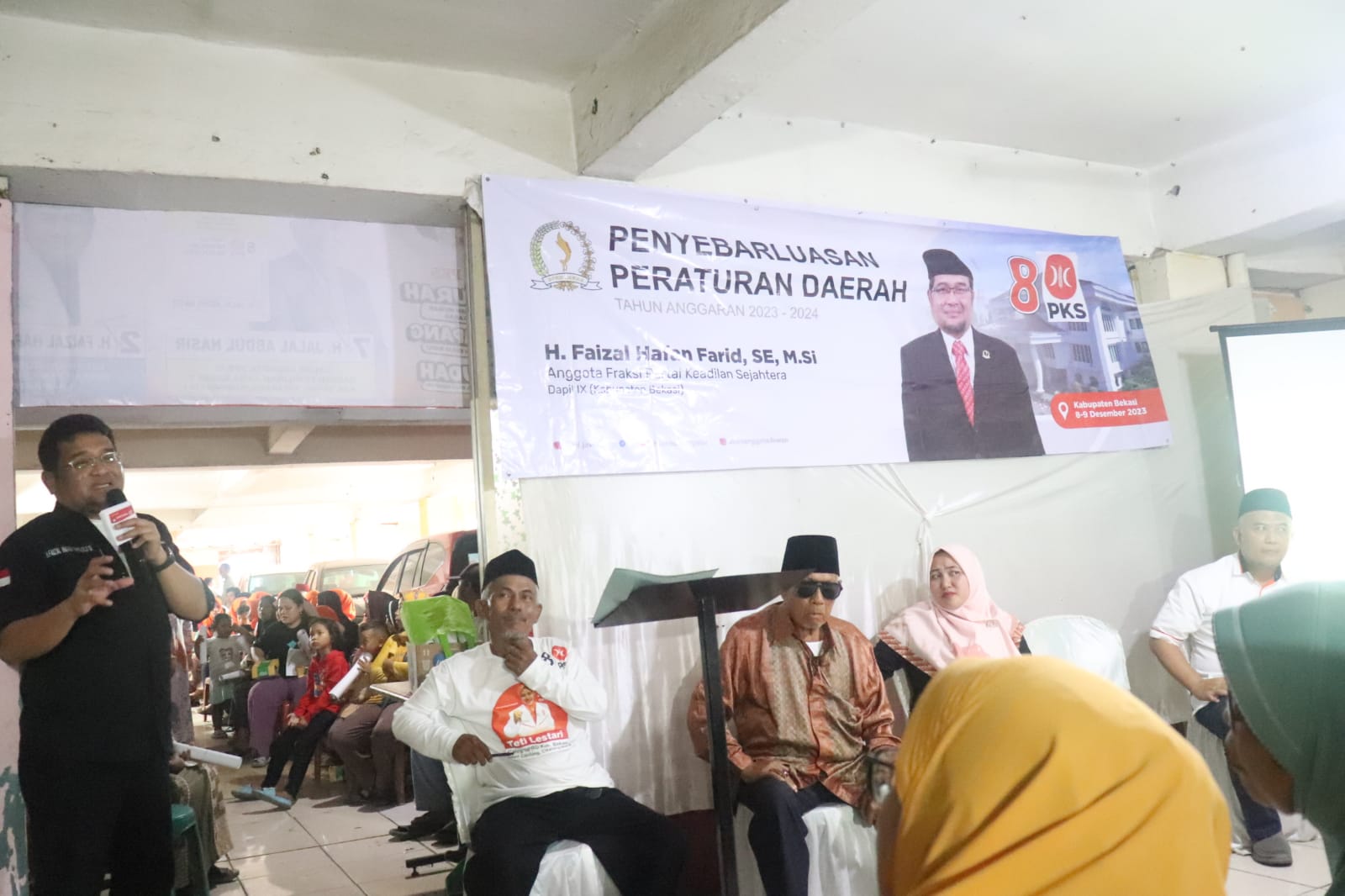 Masyarakat antusias menghadiri sosialisasi Penyebarluasan Peraturan Daerah Provinsi Jawa Barat dan berharap agar selain infrastruktur lingkungan juga diperhatikan kesejahteraan masyarakat kecil. “Pada prinsipnya Fraksi PKS konsen untuk memperjuangkan kesejahteraan masyarakat yang sesuai dengan program PKS yaitu Pangan Murah, Kerja Gampang dan Sehat Mudah, jawab Bang Haji Faizal.”