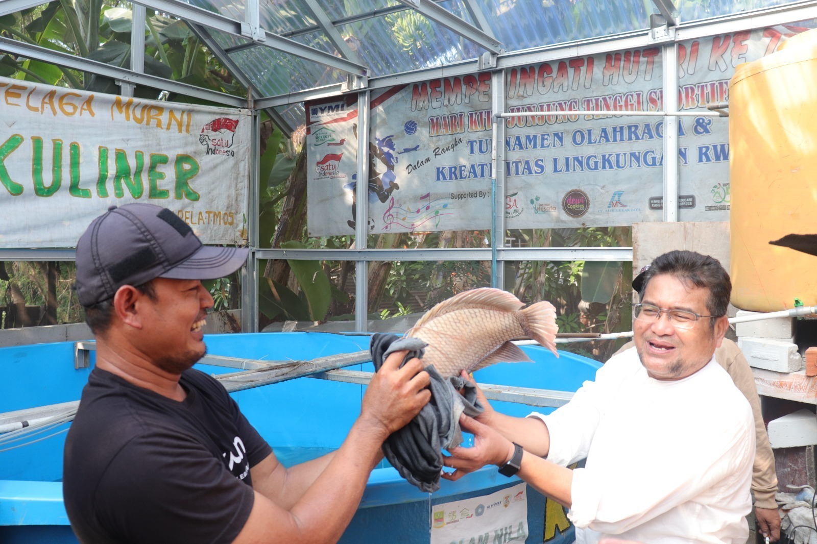 Pengurus Kampung Tangguh Jaya Bang Roni senang dengan pemberian bantuan Indukan Ikan Gurame padahal sebelumnya permohonan bantuan bibit. ” Pemberian Bantuan bukan Bibit tapi Indukan Gurame tujuannya agar naik kelas karena akan menghasilkan bibit gurame mencapai ribuan dan bukan hanya tujuan ekonomi, juga menjadi lumbung protein untuk mencegah stunting pada anak” Ujar Bang Haji Faizal Hafan Farid.