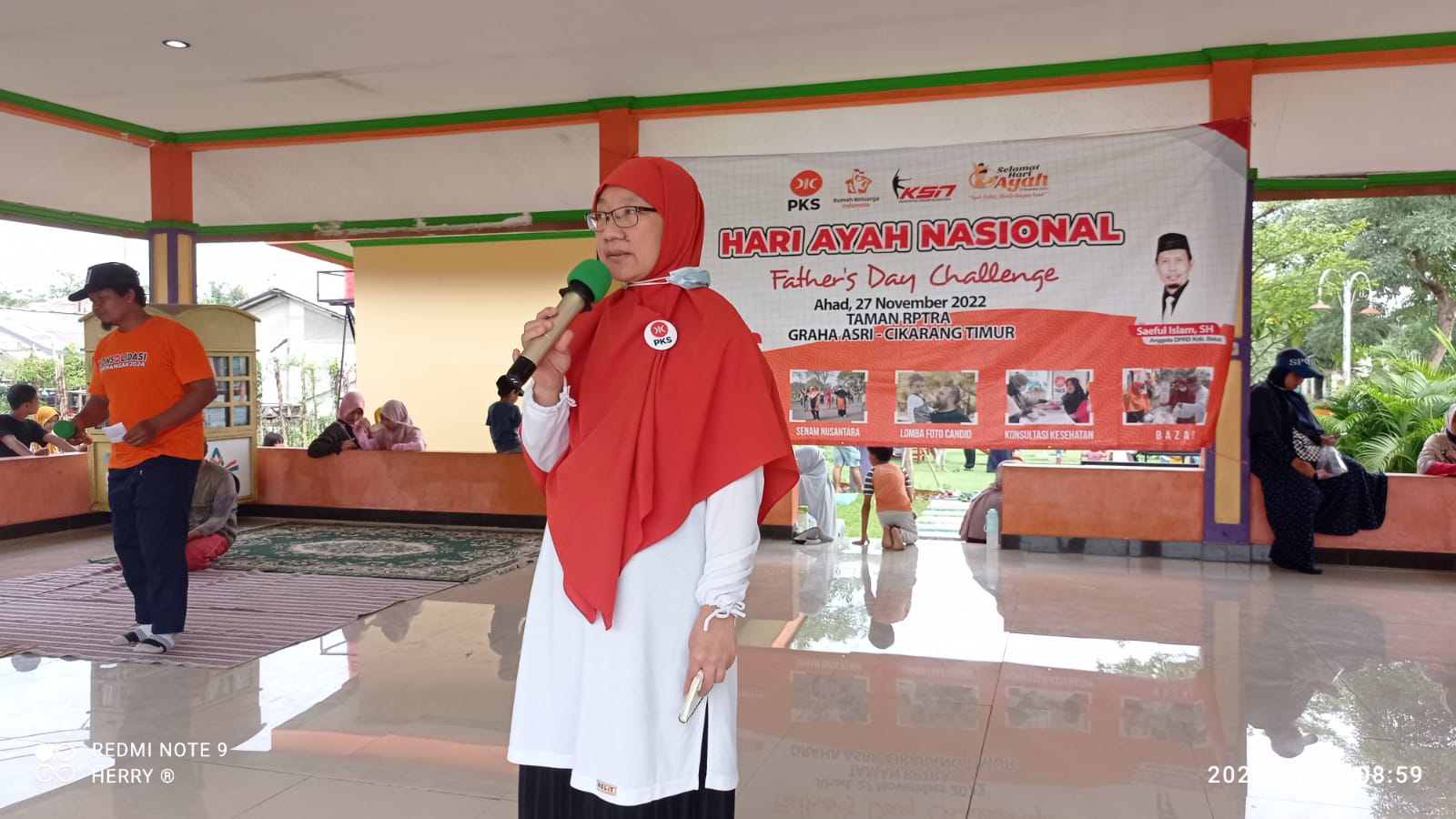 Dalam sambutannya Feranida berpesan kepada para Ayah yang hadir pagi ini di Taman RPTRA desa Jatireja dalam acara Memperingati Hari Ayah.
