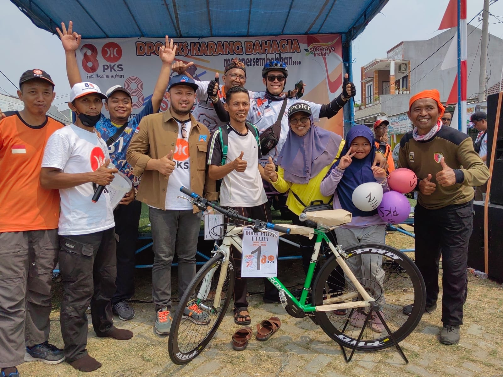 “Dukungan penuh, untuk struktur DPC PKS Karangbahagia, karena sudah sukses mengadakan agenda event Gowes Bareng, dalam rangka lebih mengenalkan dan mendekatkan PKS pada simpatisan dan masyarakat.” Ujar Azmi Robbani, sambil menyerahkan hadiah berupa Satu Sepeda pada peserta yang meraih Doorprize.