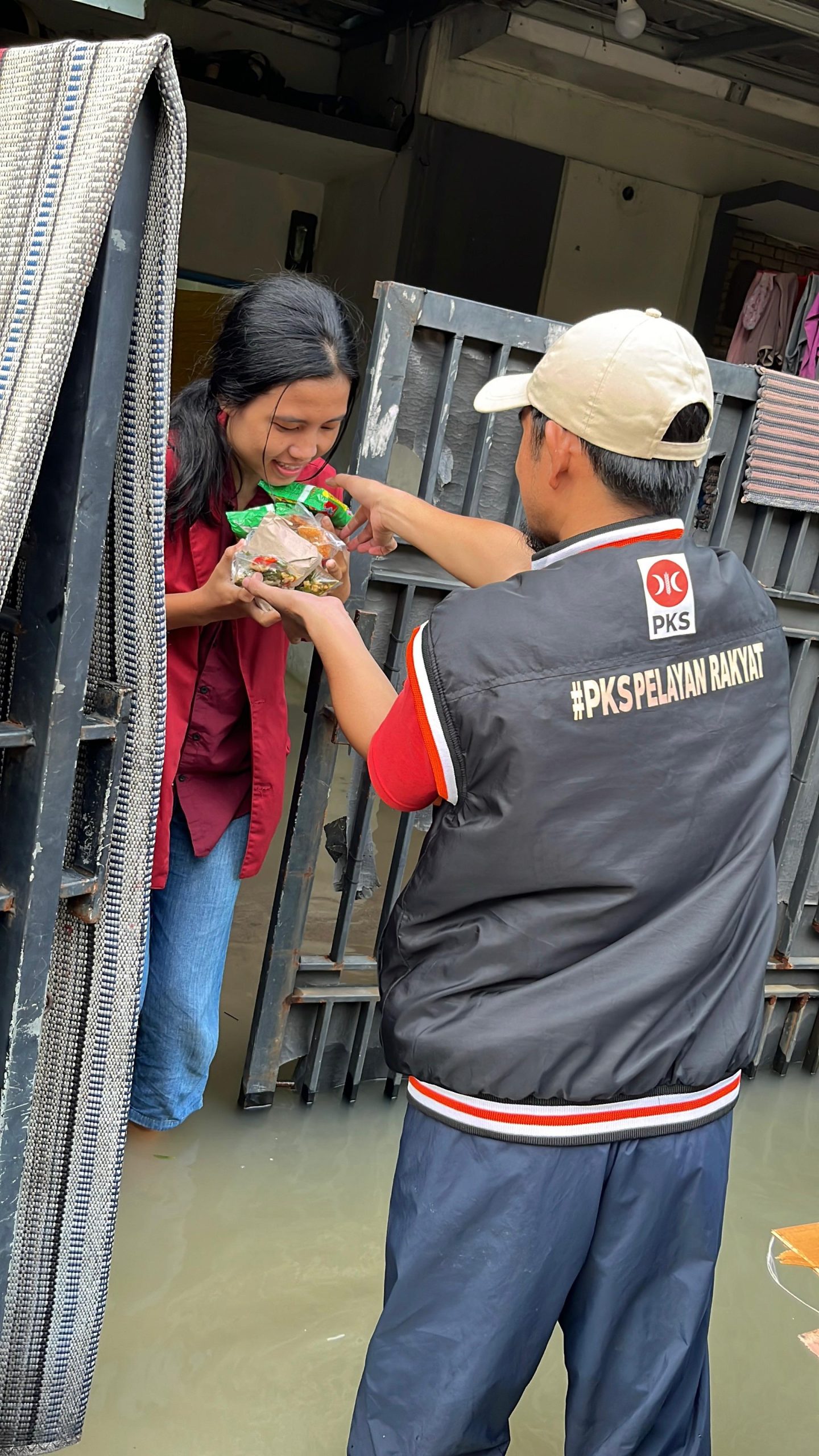 “Terima kasih untuk PKS, Alhamdulillah makanannya bisa sekalian untuk berbuka puasa. Kebetulan istri gak bisa masak, rumah kebanjiran.” Ucap Latif salah seorang penyintas banjir dengan haru.