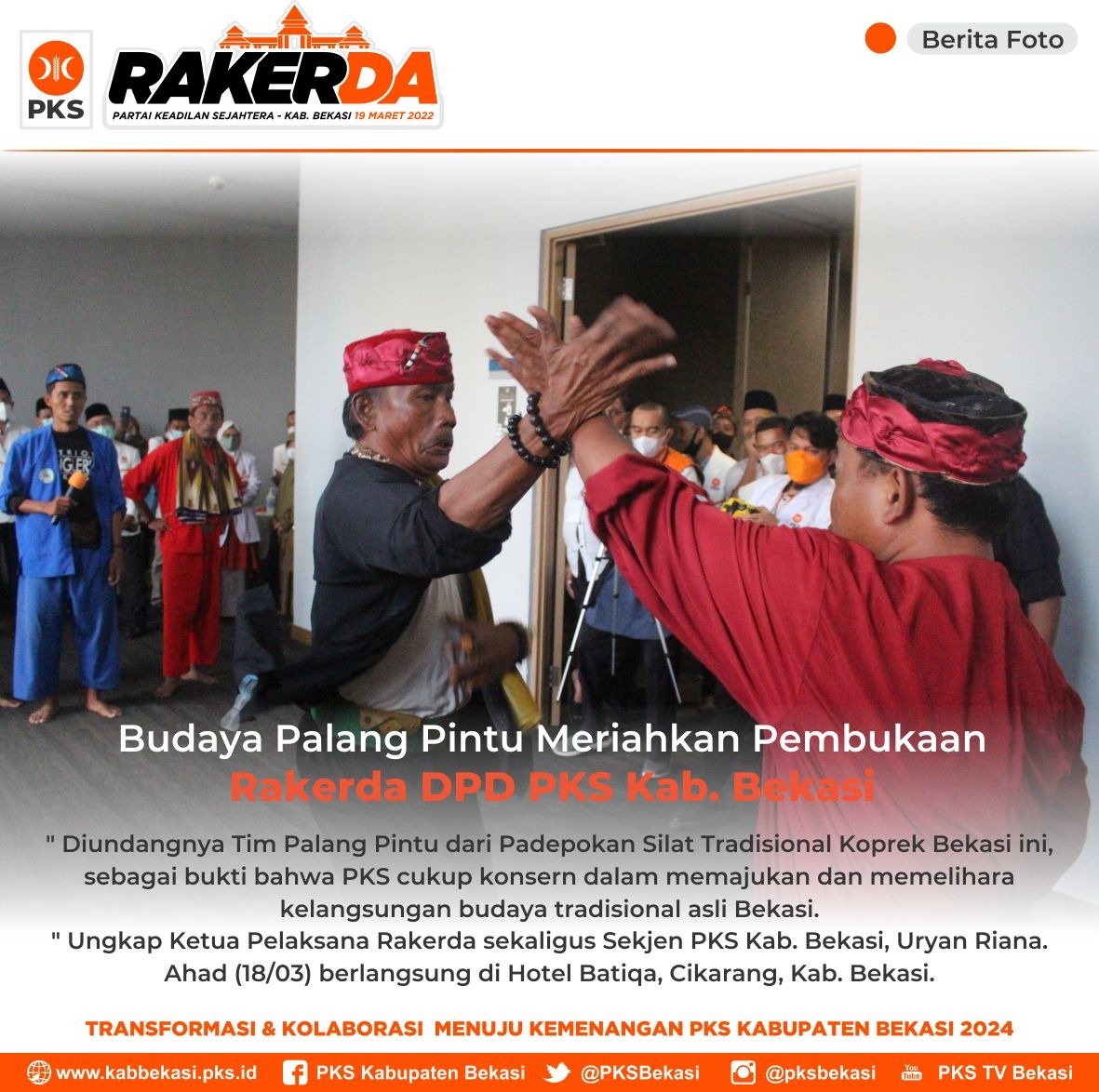 ” Di undangnya Tim Palang Pintu dari Padepokan Silat Tradisional Koprek Bekasi ini sebagai bukti bahwa PKS cukup konsern dalam memajukan dan memelihara kelangsungan budaya tradisional asli Bekasi. ” Ungkap Ketua Pelaksana Rakerda sekaligus Sekjen PKS Kab. Bekasi, Uryan Riana.