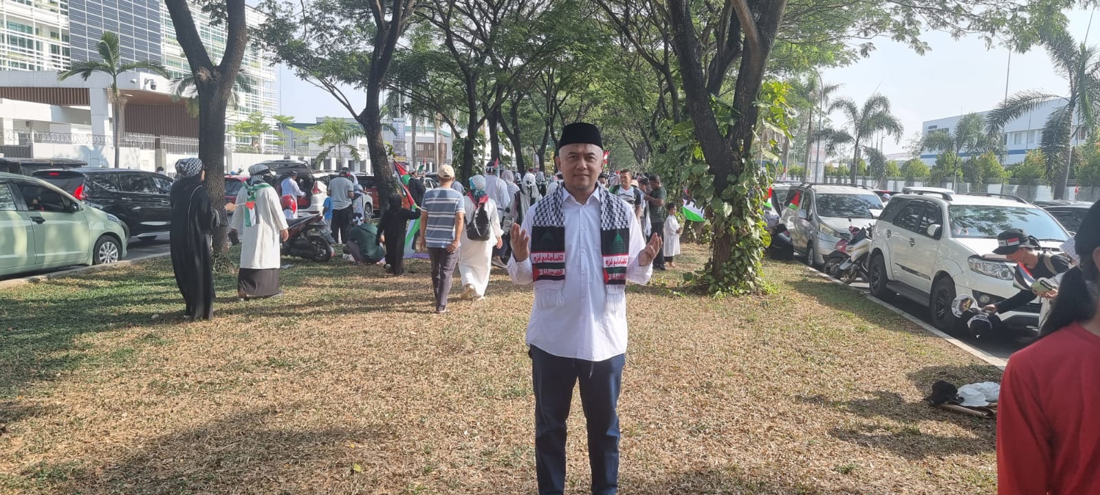 PKSBEKASI – Cikarang Timur, Kabupaten Bekasi – Haji Jalal Abdul Nasir, seorang calon legislatif (caleg) dari Partai Keadilan Sejahtera (PKS), turut serta dalam Aksi Damai Bela Palestina yang berlangsung di Stadion Wibawamukti. Namun, sayangnya, Haji Jalal tidak dapat masuk ke area aksi karena telah dipenuhi oleh ribuan peserta aksi yang turut meramaikan acara tersebut, Minggu, 19/11/23.