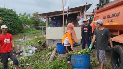 “Alhamdulillah hari ini kami mengadakan kerja bakti membersihkan sungai, mengeruk lumpur dan mencabut tanaman liar di sepanjang bantaran Sungai Telagamurni, Cikarang Barat,” kata Teti Lestari.