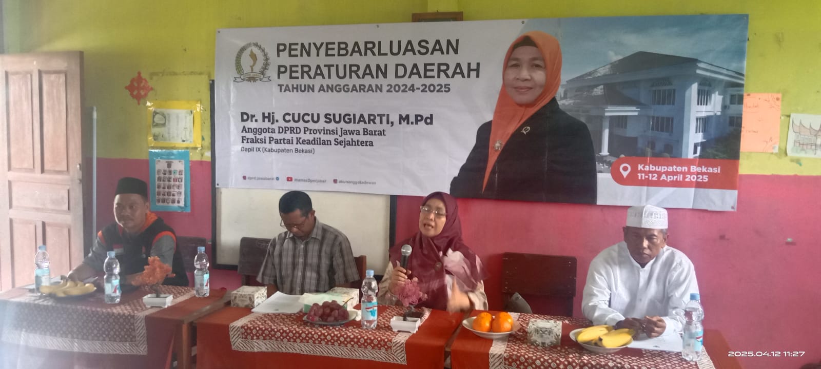PKS Bekasi – Anggota DPRD Provinsi Jawa Barat, Dr. Hj. Cucu Sugiarti, M.Pd, Sosialisasikan Peraturan Daerah Jawa Barat tentang Ketahanan Rumah Tangga di Yayasan An Nabil Mulya, Kp. Tenjolaut RT. 01/01, Desa Sukakarya, Kecamatan Sukakarya, Kabupaten Bekasi pada Sabtu (12/4).