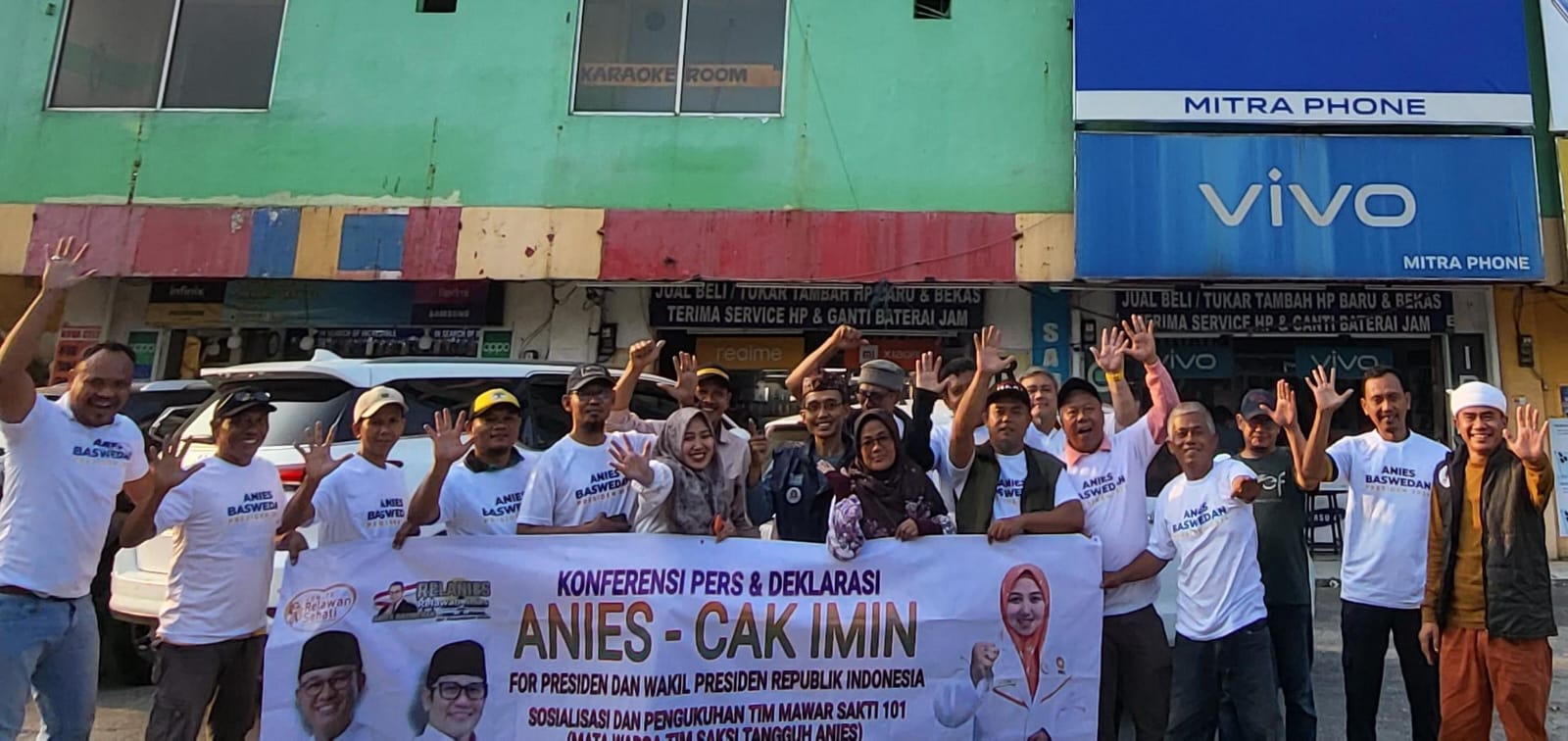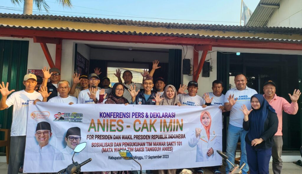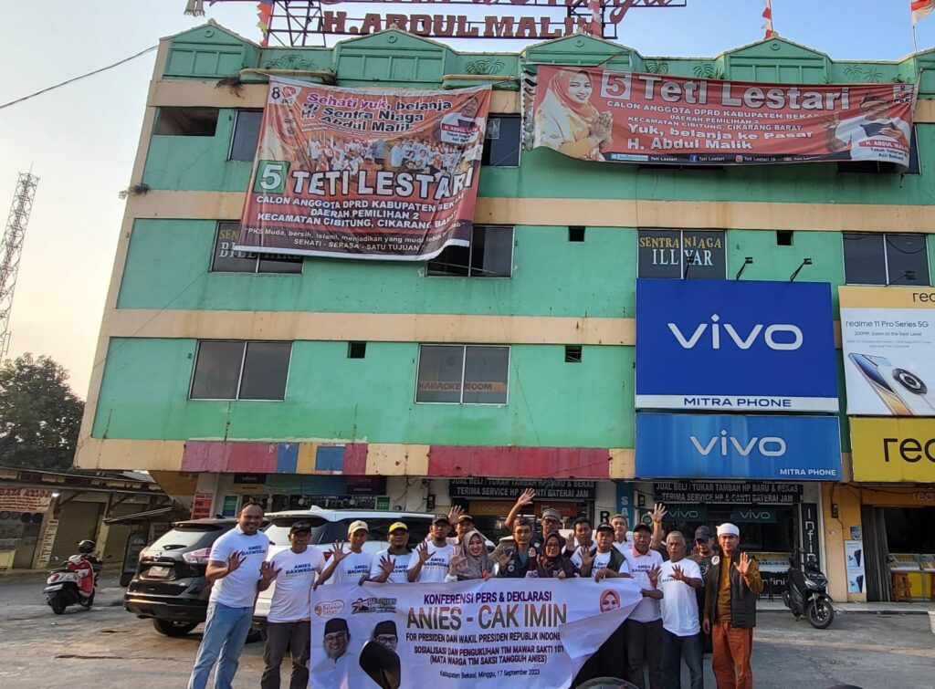 Deklarasi digelar bersama seluruh relawan Sehati (Sekeluarga Sahabat Teti Lestari) dan Relanies (Relawan Anies) Kabupaten Bekasi di Posko Relawan Sehati, Pasar Haji Abdul Malik, Cikarang Barat, Minggu (17/9/2023).
