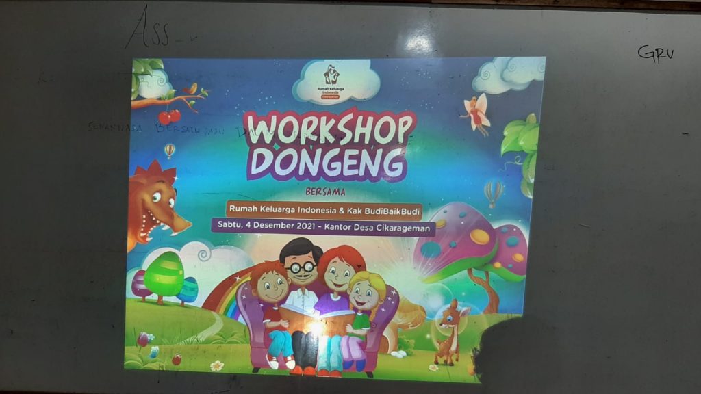 Bertempat di aula kantor desa, Rumah Keluarga Indonesia atau RKI Desa Cikarageman mengadakan pelatihan atau workshop mendongeng bagi para guru pada Sabtu (4/12/2021).