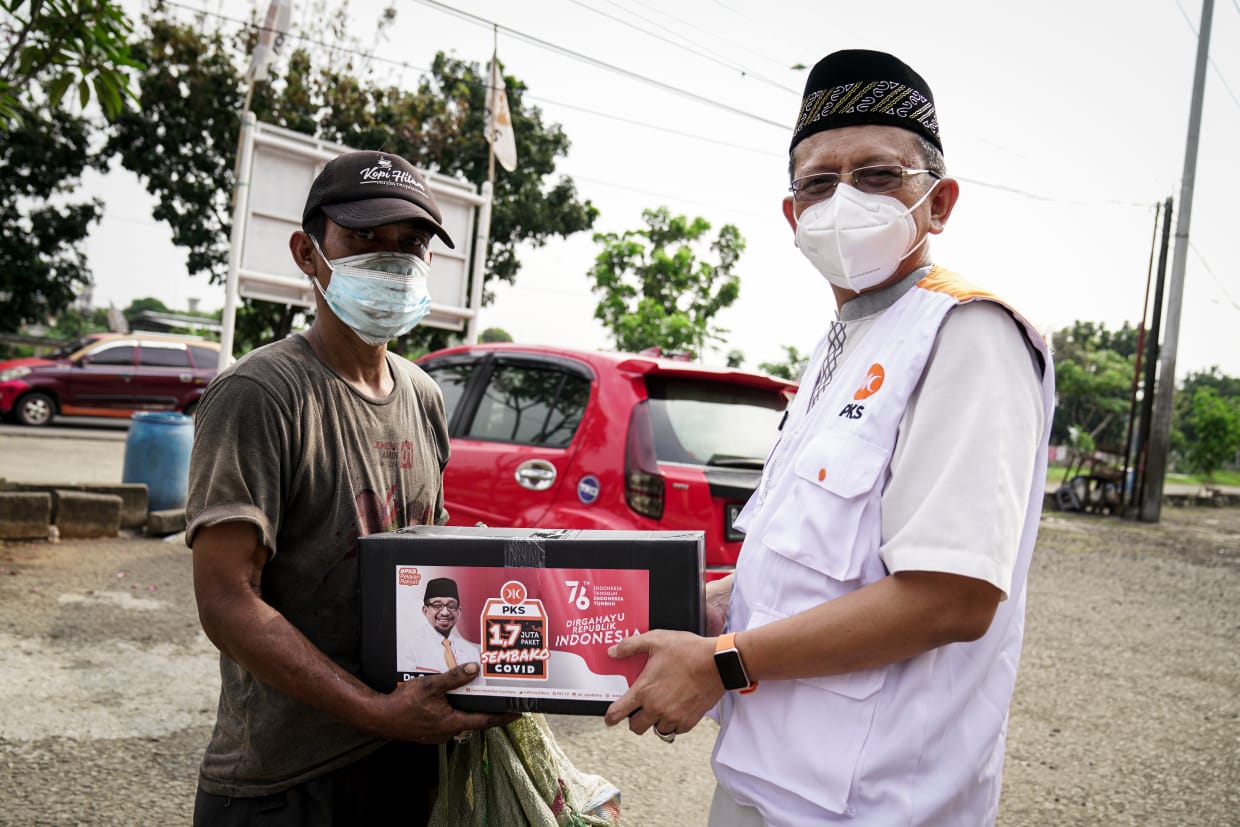 Ketua DPD PKS Kabupaten Bekasi Budi MM terjun langsung dengan membagikan Paket Sembako kepada masyarakat yang membutuhkan.