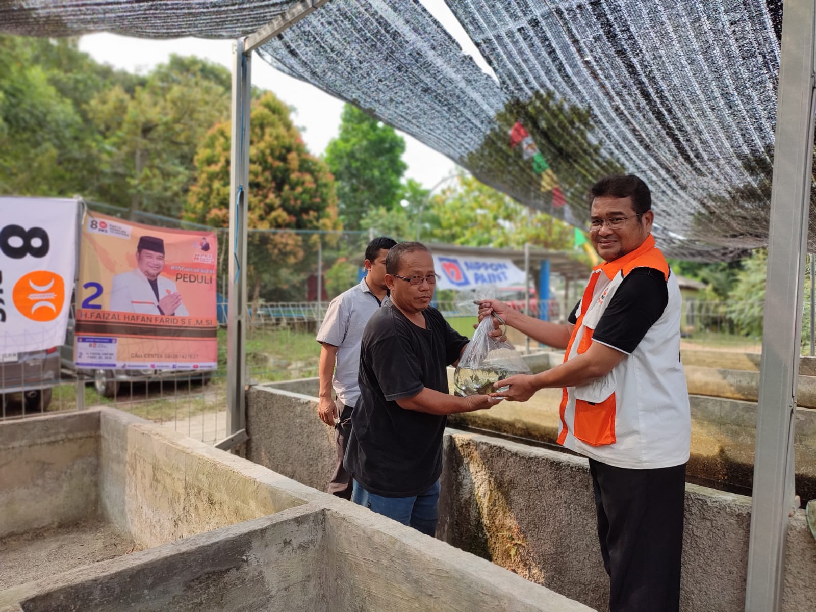 PKSBEKASI – Faizal Hafan Farid menyerahkan 5000 ekor benih Lele kepada warga di Kecamatan Setu, Selasa sore (15/08). Benih ikan Lele sebanyak 5000 ekor itu disertai pakannya diserahkan kepada ketua RT 10 RW 07, Perumahan Griya Pratama Mas, Desa Cikarageman, Kecamatan Setu, Mulyawan yang juga seorang pembudidaya ikan.