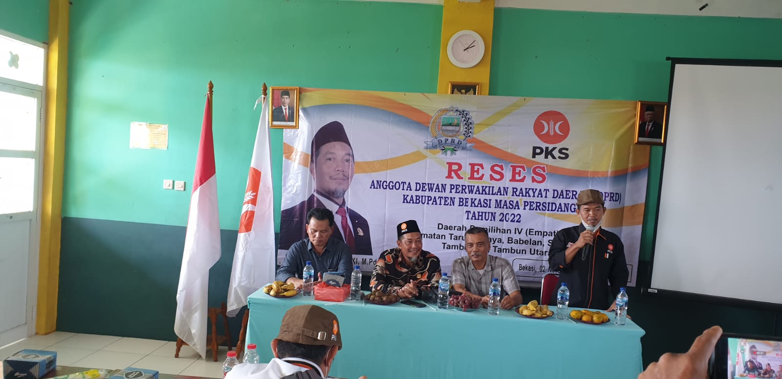 PKS BEKASI – H.Mustaqim Marjuki, S.Ag. MPD menggelar reses masa persidangan II Tahun 2022, di Perumahan The Palm Residence Desa Sriamur Tambun Utara, Sabtu (05/11/2022). Reses tersebut dihadiri para tokoh masyarakat, tokoh pemuda. Tampak masyarakat yang hadir sangat antusias.