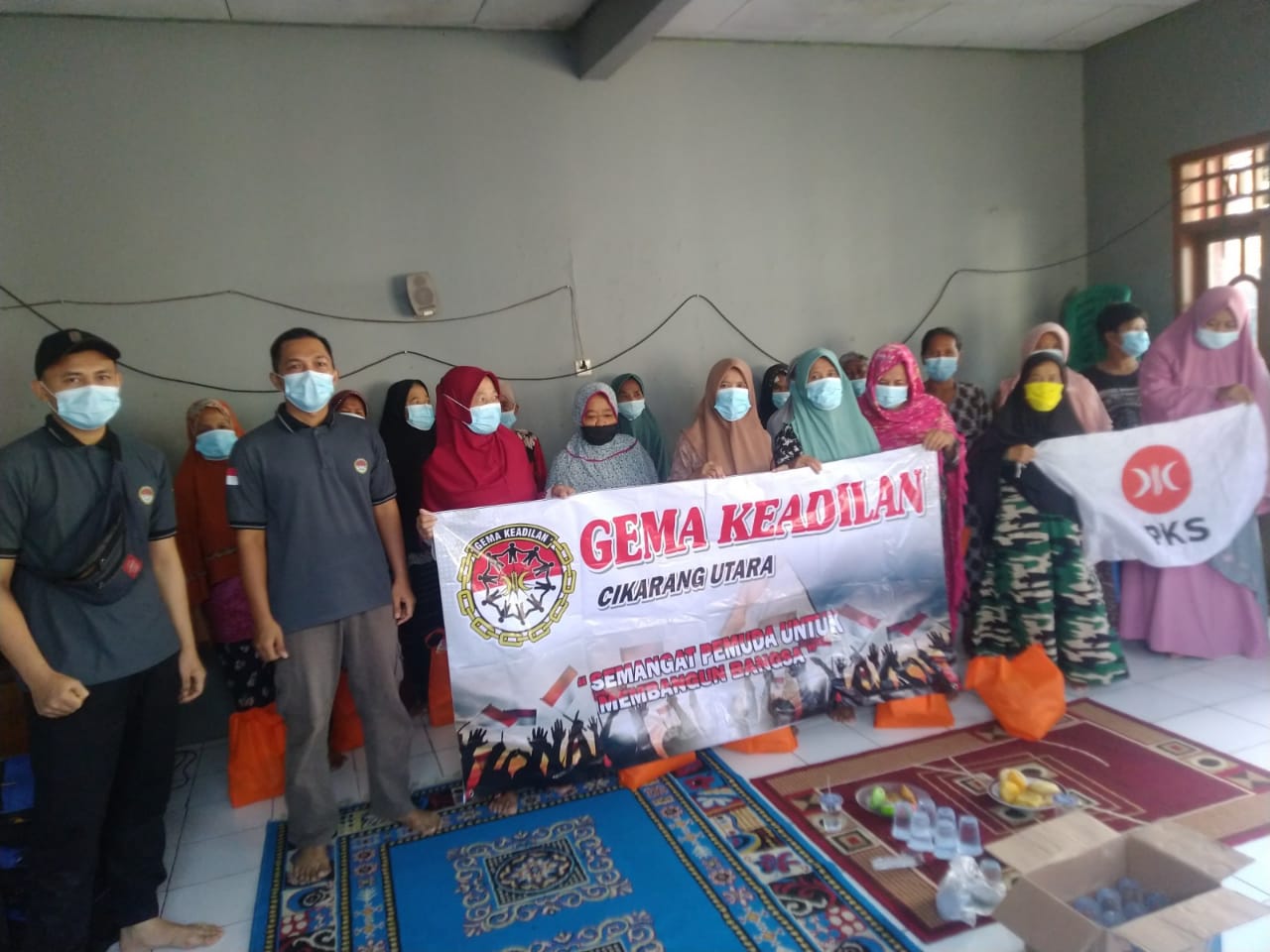 Gema Keadilan (GK) Cikarang Utara membagikan sembako dan jadwal imsakiyah Ramadhan pada Ahad (11/4)