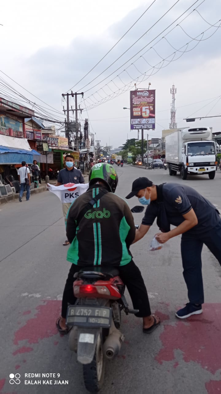 Gema Keadilan (GK) Cikarang Utara membagikan ta’jil on the road pada Sabtu (17/4) di lampu merah Pasir Gombong, Cikarang Utara,Bekasi.