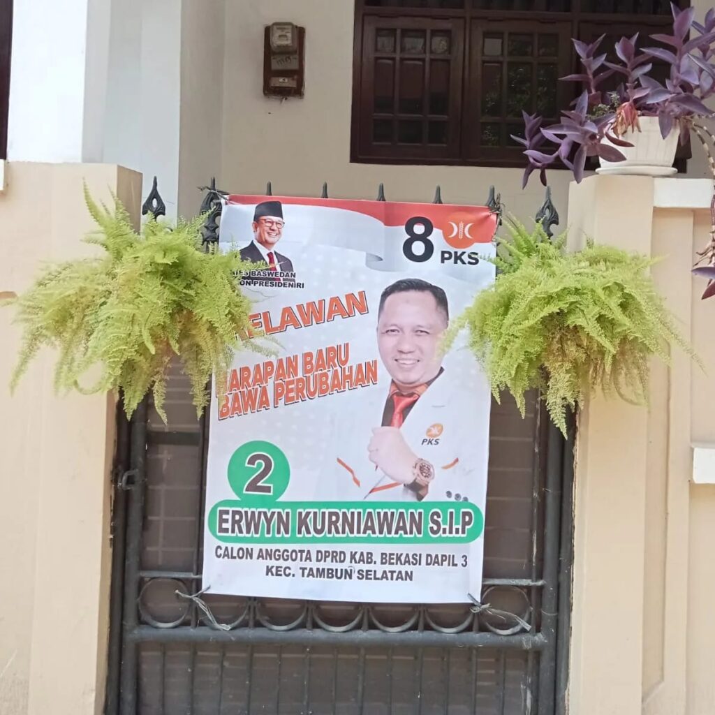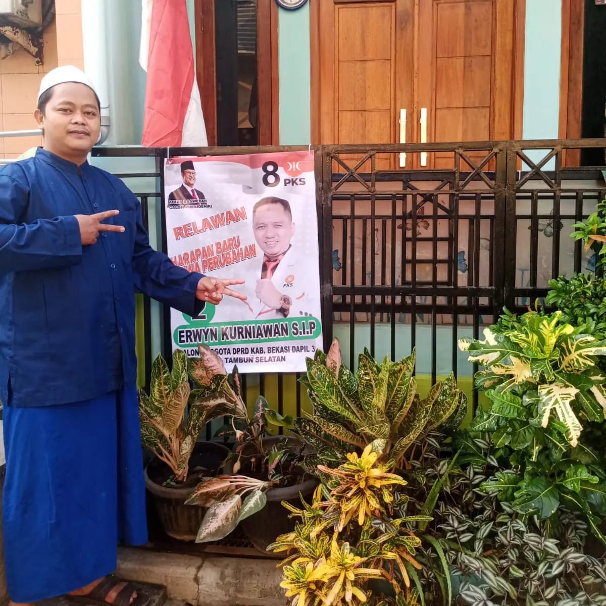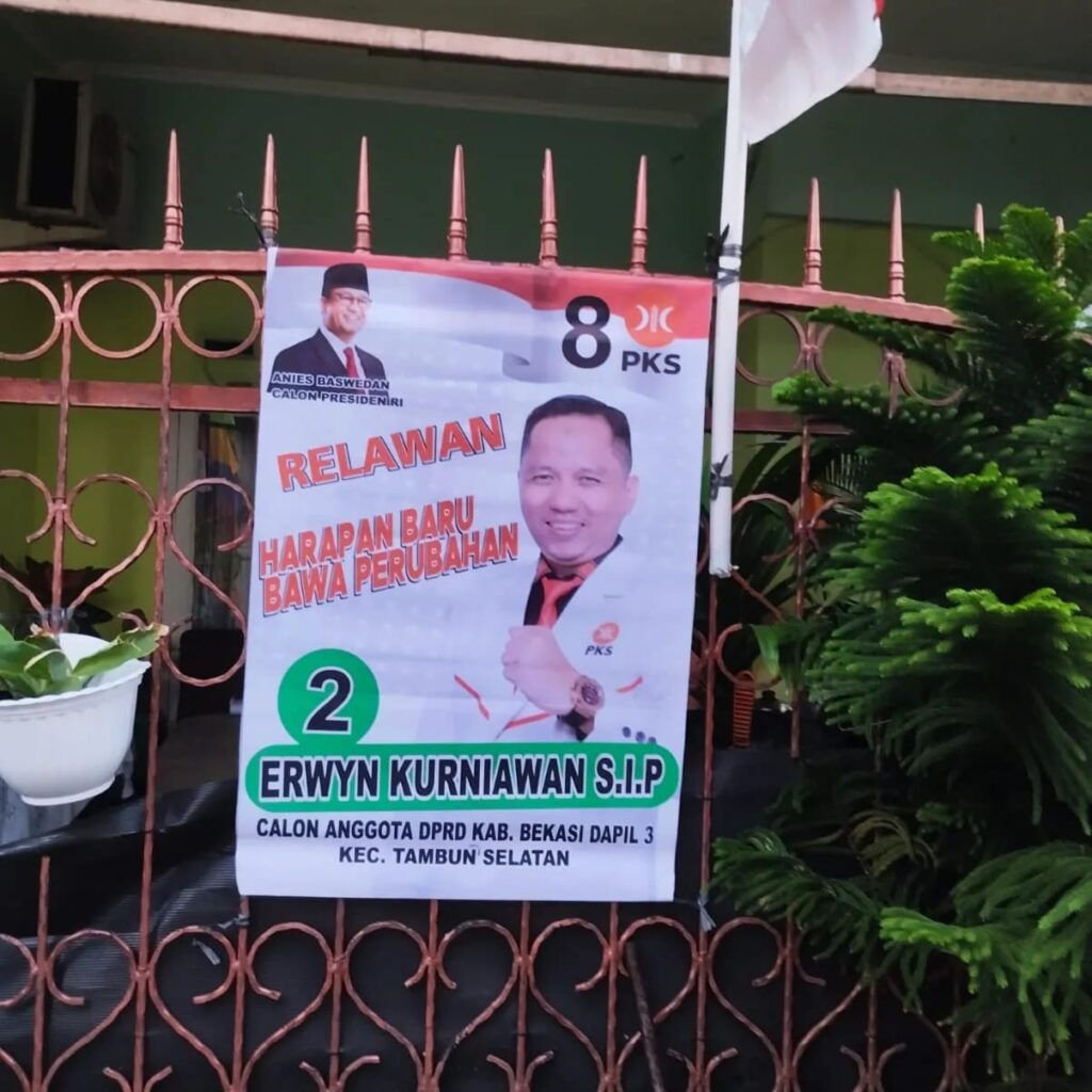 PKS BEKASI + Calon Anggota DPRD Kabupaten Bekasi Erwyn Kurniawan melakukan Gerakan Pasang 100 Atribut di rumah relawannya. Kegiatan ini mulai dilaksanakan Rabu, (9/8).