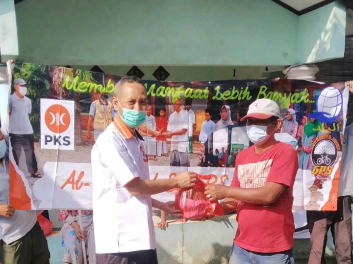 Gowes Partai Keadilan Sejahtera (GPS) Cikarang Utara dan Al Balad peduli membagikan sembako.