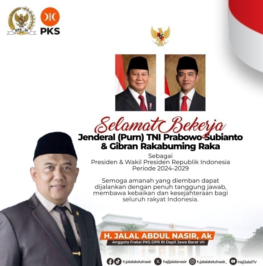 Tak lupa, Haji Jalal menyampaikan ucapan selamat kepada Prabowo dan Rakabuming Raka atas pelantikan mereka sebagai Presiden dan Wakil Presiden RI periode 2024-2029. “Selamat kepada Pak Prabowo S dan Rakabuming R, Semoga kepemimpinannya membawa perubahan positif bagi bangsa dan negara,” pungkasnya.