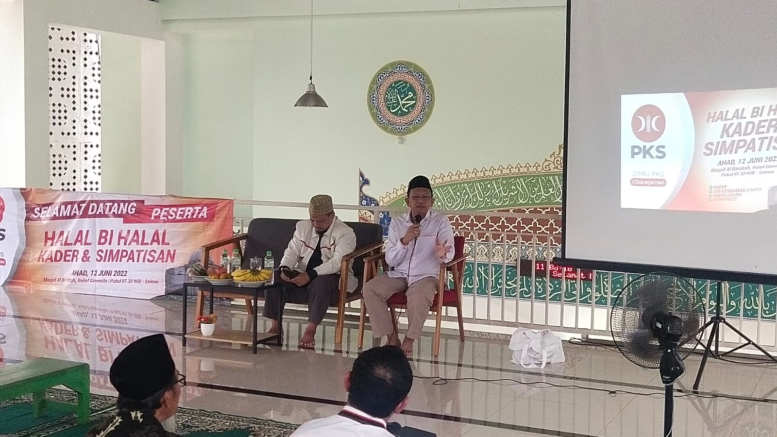 Ketua DPD PKS atau Dewan Pengurus Daerah Partai Keadilan Sejahtera Kabupaten Bekasi menghadiri Halal Bihalal pengurus, kader dan simpatisan DPRa PKS Cikarageman Kecamatan Setu, Bekasi.