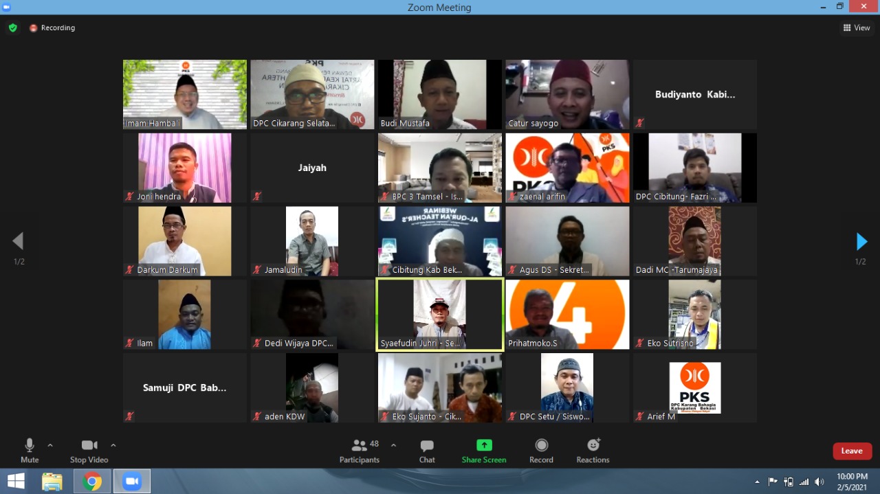 Rapat koordinasi digelar pada Jumat (5/2) di Bekasi dengan menggunakan aplikasi zoom, sebagai bentuk menjaga protokol kesehatan dari covid 19.