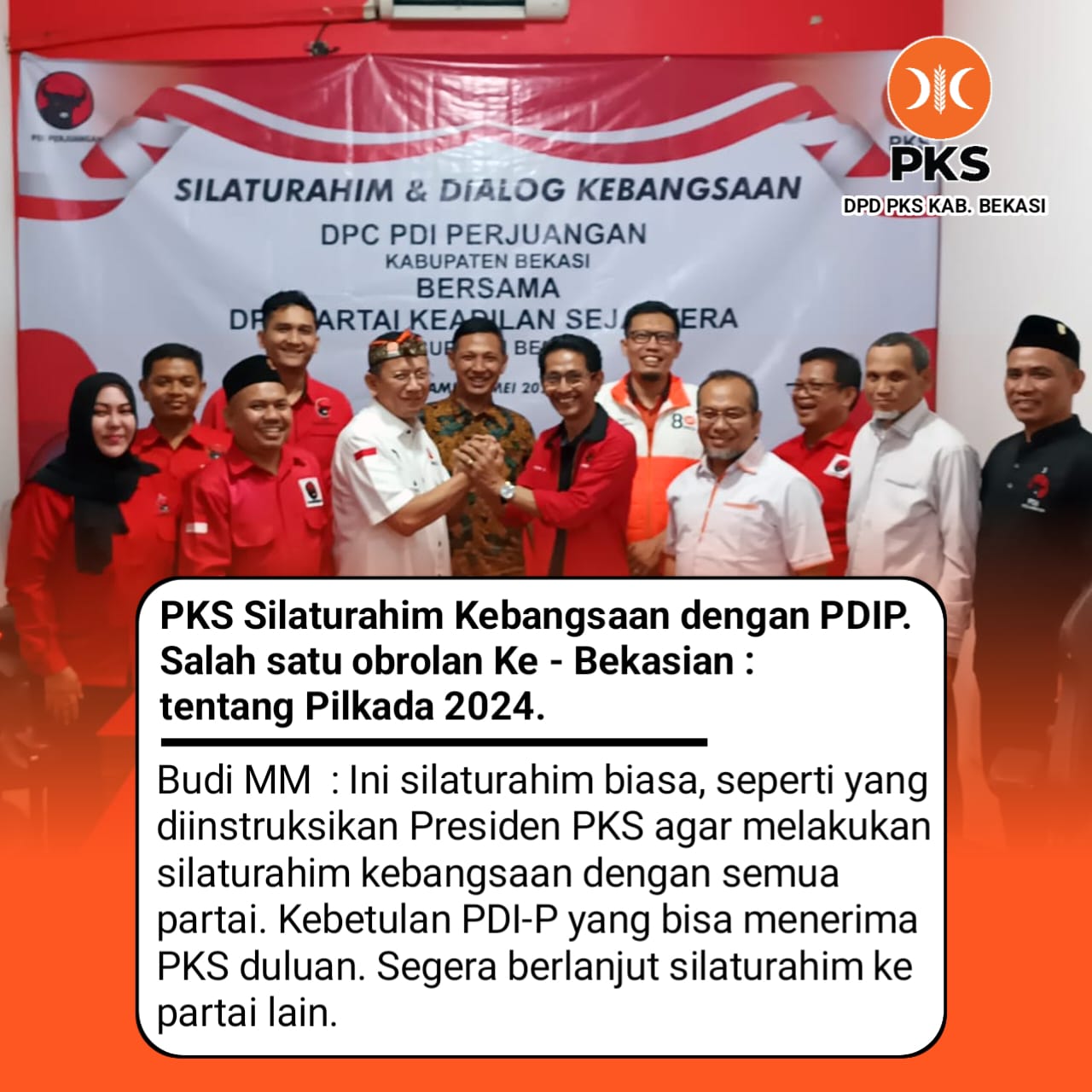 Rombongan PKS disambut langsung oleh Ketua DPC PDI Perjuangan Kabupaten Bekasi, Soleman yang didampingi oleh Sekretaris, Wakil Sekretaris, Ketua2 Bidang dan PAC (Kecamatan). Dalam sambutannya, Budi MM mengatakan bahwa silaturahim kebangsaan yang dilakukannya merupakan instruksi dari Presiden PKS, Ahmad Syaikhu.
