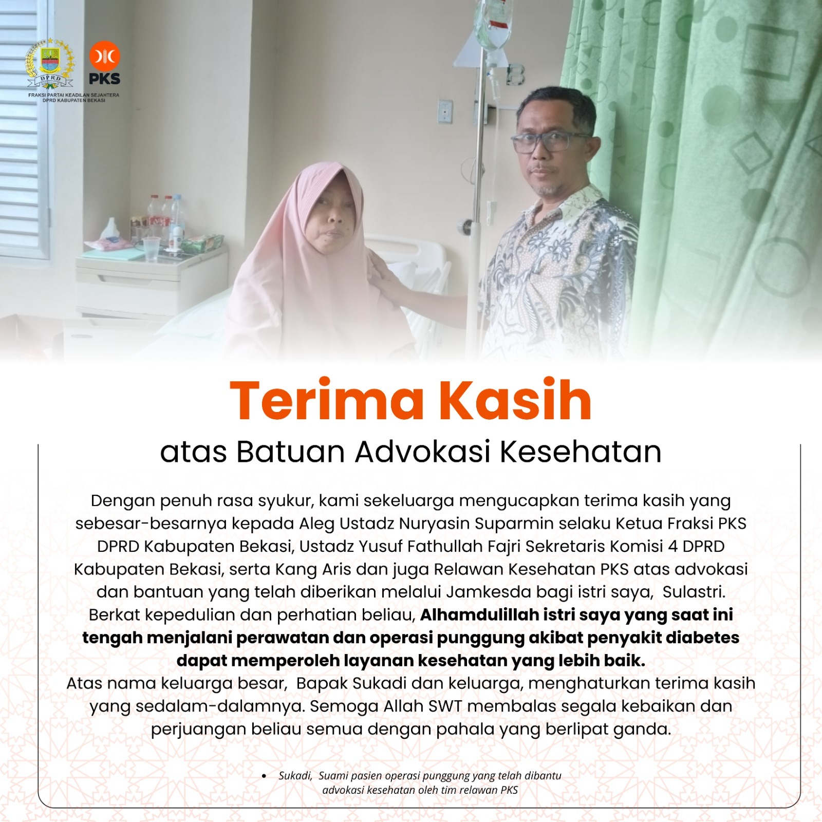 Selain dua anggota DPRD Kabupaten Bekasi, Kang Aries Suwarno dari tim relawan PKS juga turut mendampingi langsung. Keluarga pasien mengaku sangat terbantu, baik secara administratif maupun secara moral.
