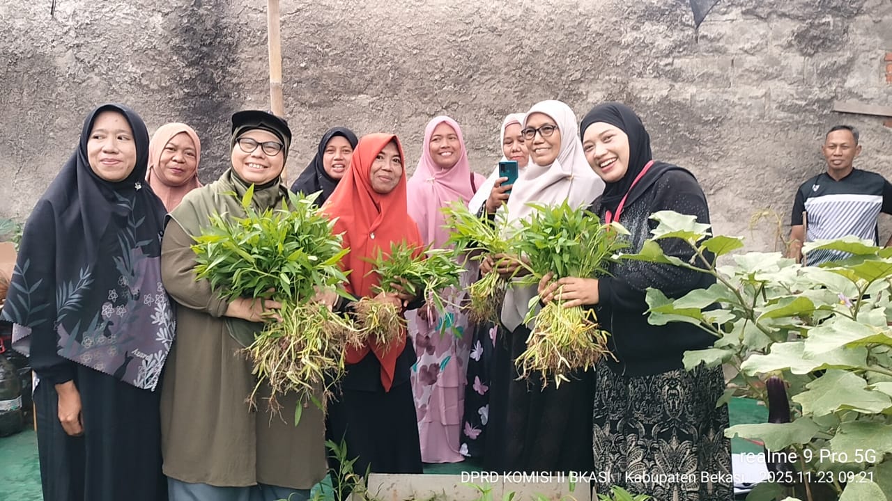 PKS Bekasi, Kabupaten Bekasi, 23 November 2025 — Ketua Komisi II DPRD Kabupaten Bekasi, Ani Rukmini, menghadiri panen raya kebun warga di RT 11/37 Perumahan Griya Asri Bahagia, Minggu (23/11). Kegiatan ini menjadi bukti konkret komitmen warga dalam memanfaatkan lahan kosong untuk mendukung ketahanan pangan lingkungan.