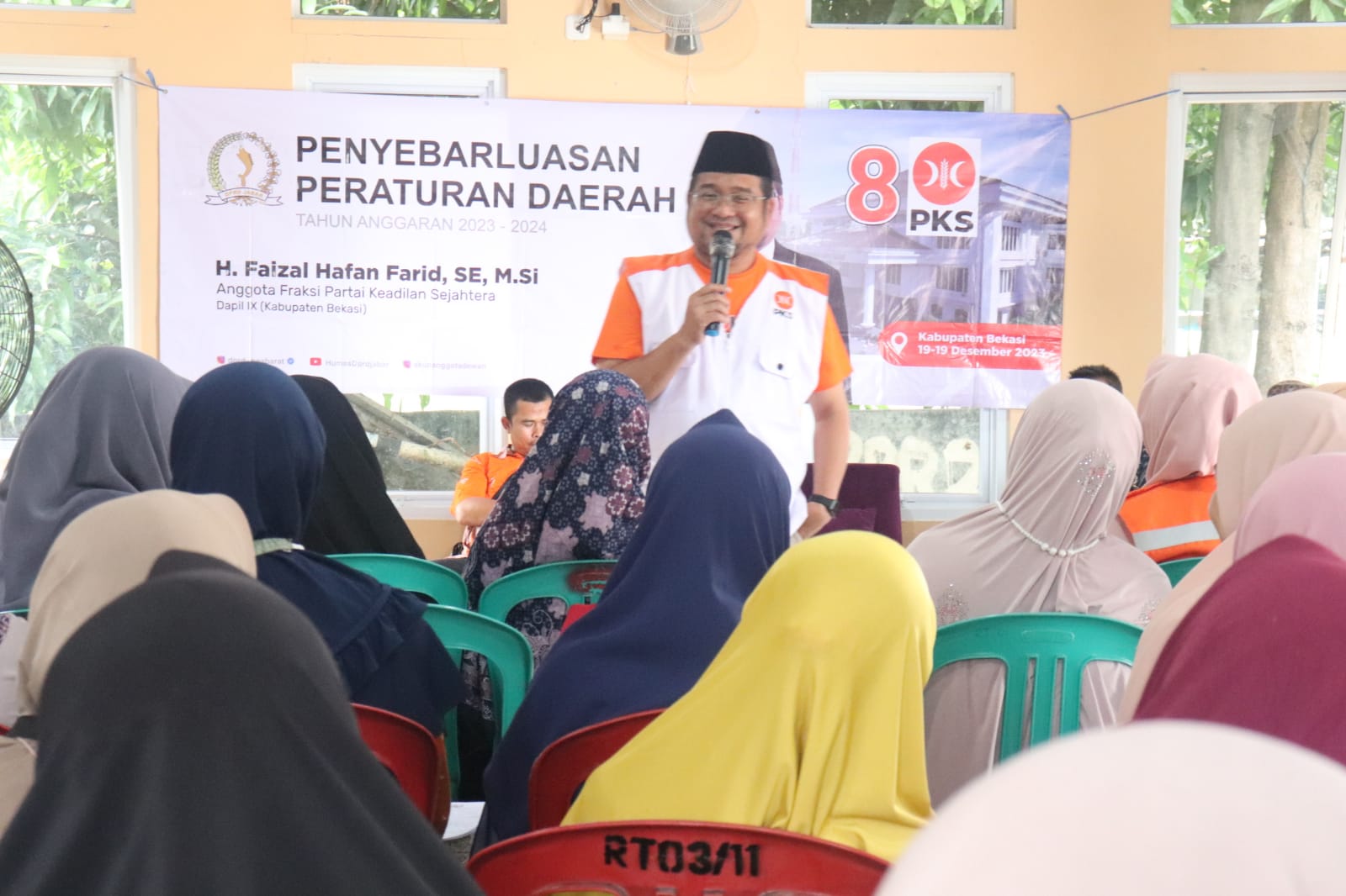 PKS Bekasi – Selasa Siang, 19 Desember 2023 Bang Haji Faizal Hafan Farid sebagai Anggota DPRD Jawa Barat memberikan Sosialisasi Penyebarluasan Peraturan Daerah (Sosperda) Jawa Barat yakni UU No.2 Tahun 2023 tentang Penyelenggaraan Pemberdayaan dan Perlindungan Perempuan di Perumahan Mustika Gandaria Desa Ciledug Kecamatan Setu Kabupaten Bekasi Jawa Barat.