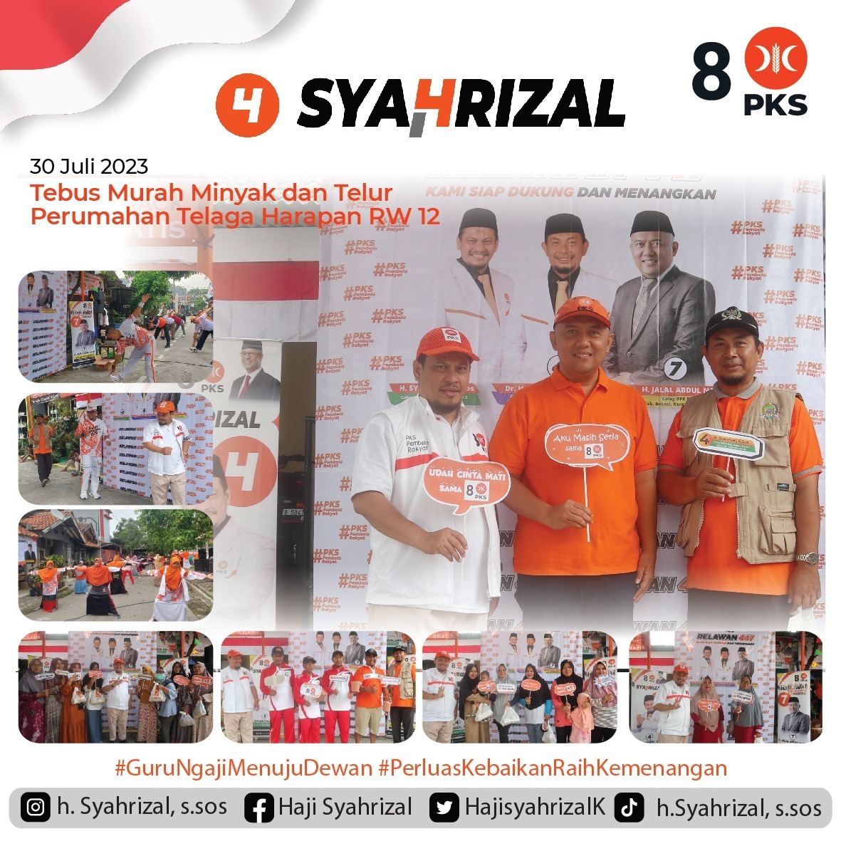 H. Syahrizal, S. Sos Caleg PKS DPRD Kabupaten Bekasi No. 4. Bersama Caleg DPR RI No.7 H. Jalal Abdul Nasir serta Caleg Provinsi Jabar No. 4 Dr. Ayyub Rohadi, M.Phil menyapa masyarakat bersama PKS pada Hari Ahad, 30 Juli 2023 di Perumahan Telaga Harapan Cikarang Barat.