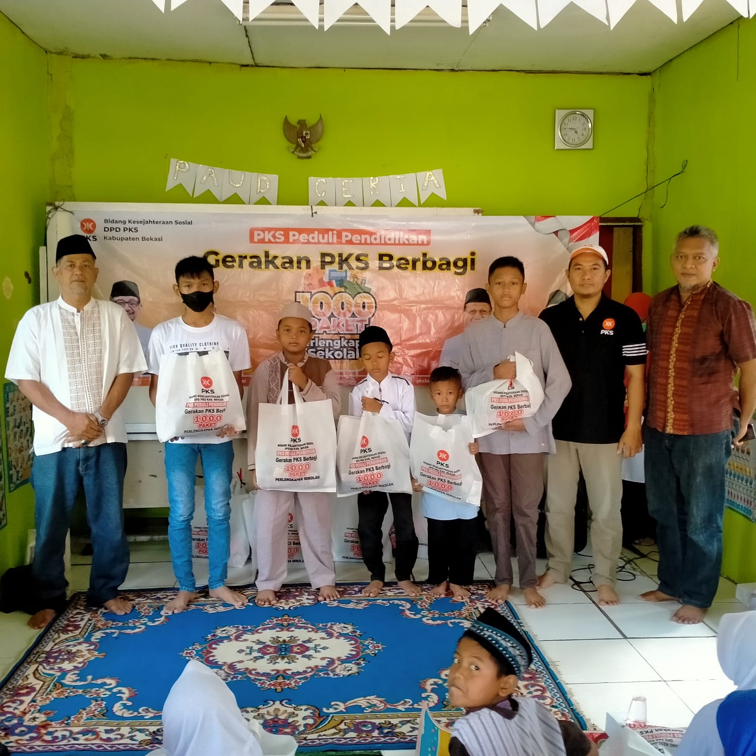 CIKARANG UTARA – Dewan Pengurus Daerah (DPD ) PKS Kabupaten Bekasi melalui Bidang Kesejahteraan Sosial (Kessos) dan DPC PKS Cikarang Utara membagikan 30 paket perlengkapan sekolah untuk anak di wilayah Cikarang Utara. Acara berlangsung di Desa Simpangan, Kecamatan Cikarang Utara pada Sabtu (30/7/2022) pagi. Acara ini merupakan kegiatan PKS Peduli Pendidikan, Gerakan PKS Berbagi 1000 paket perlengkapan sekolah.