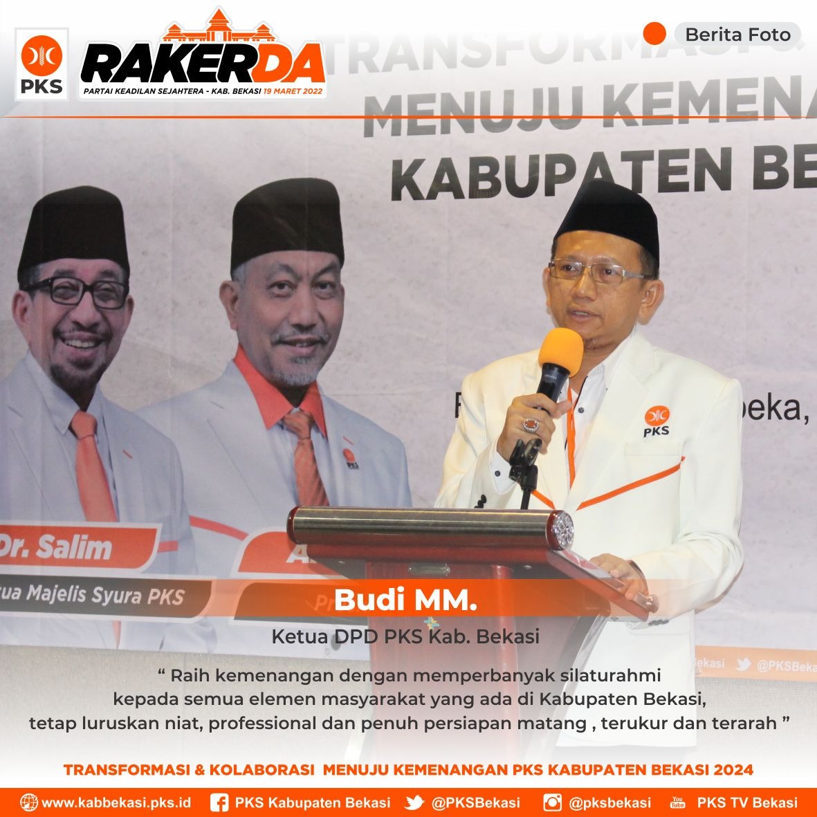 Dalam sambutannya Ketua DPD PKS Kab. Bekasi, Budi Muhammad Mustofa mengataka bahwa rakerda ini adalah salah satu langkah awal dari semua rencana kerja PKS dalam upaya menyambut kemenangan tahun 2024 mendatang.