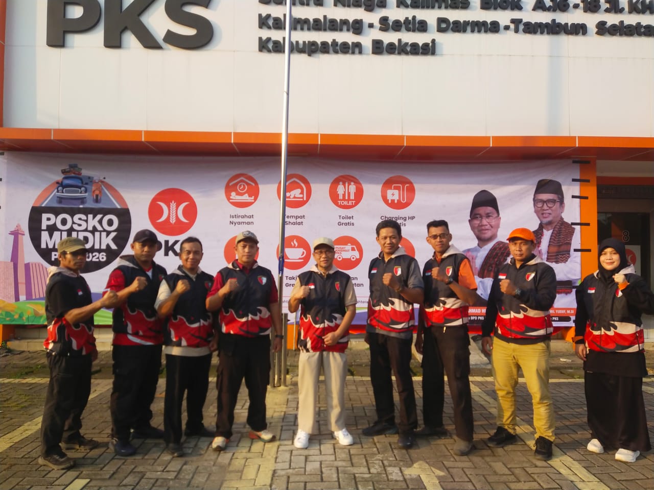 PKS Bekasi – Dewan Pengurus Daerah (DPD) PKS Kabupaten Bekasi resmi melaunching Posko Mudik PKS pada Ahad, 15 Maret 2026 di Kantor DPTD PKS Kabupaten Bekasi. Launching dilakukan langsung oleh Ketua DPD PKS Kabupaten Bekasi, Ustadz Akhmad Hisyam, didampingi Ketua Bidang Kepanduan dan Bela Negara (BKBN) Taryono, Sekretaris Bidang Guntur Yadi, serta jajaran staf bidang lainnya.