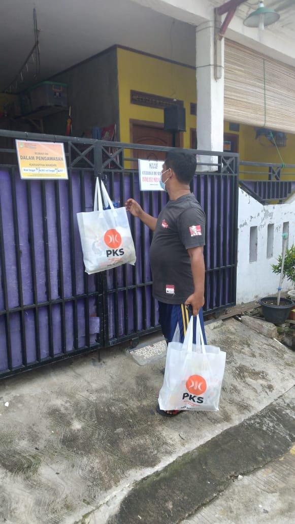 Dewan Pengurus Ranting (DPRa) PKS Sukaraya Kecamatan Karang Bahagia membagikan puluhan paket bantuan sosial (bansos) berupa makanan dan vitamin (Beras 5 kg, Buavita, Minuman C1000, Mie 5 bungkus, Susu, Roti Tawar) bagi warga yang sedang menjalani isolasi mandiri (isoman) karena Covid-19 di Perumahan Puri Nirwana Residence (PNR) pada Sabtu (26/6).
