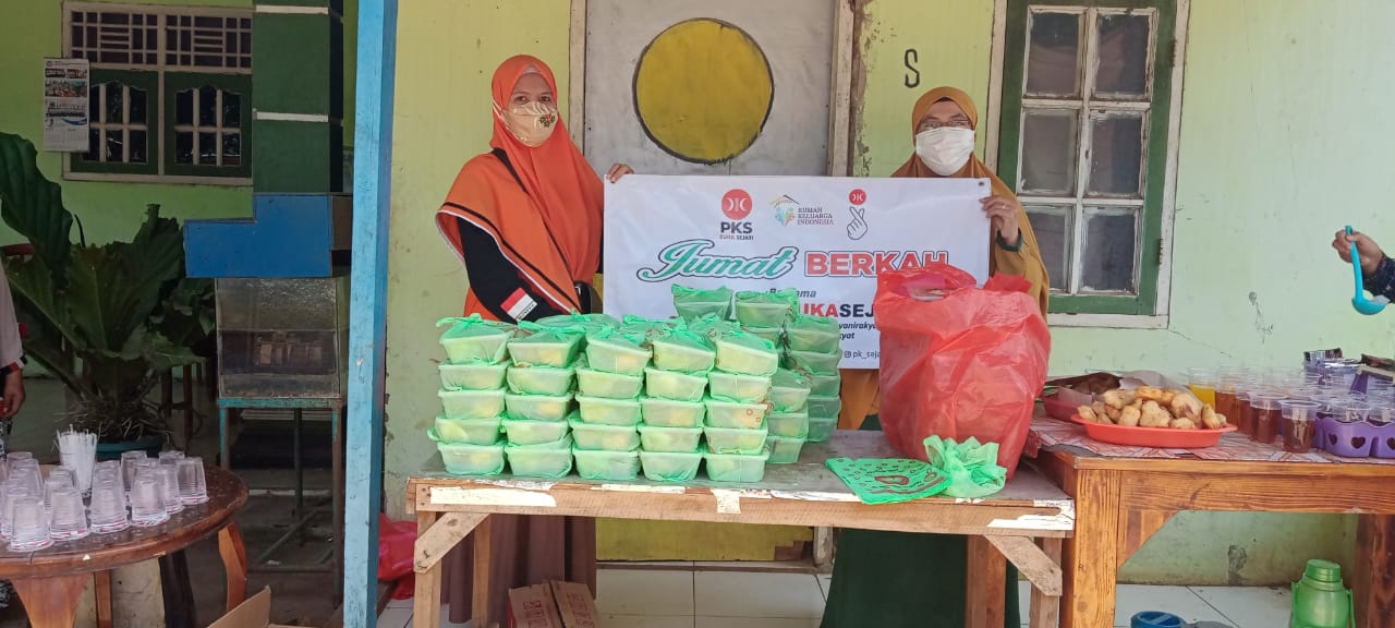 Pada kesempatan Jum’at berkah kali ini, DPRa PKS Sukasejati bekerjasama dengan Rumah Keluarga Indonesia Kecamatan Cikarang Selatan membagikan ratusan makanan siap saji kepada jama’ah Masjid Darussalam seusai mereka melaksanakan sholat Jum’at.