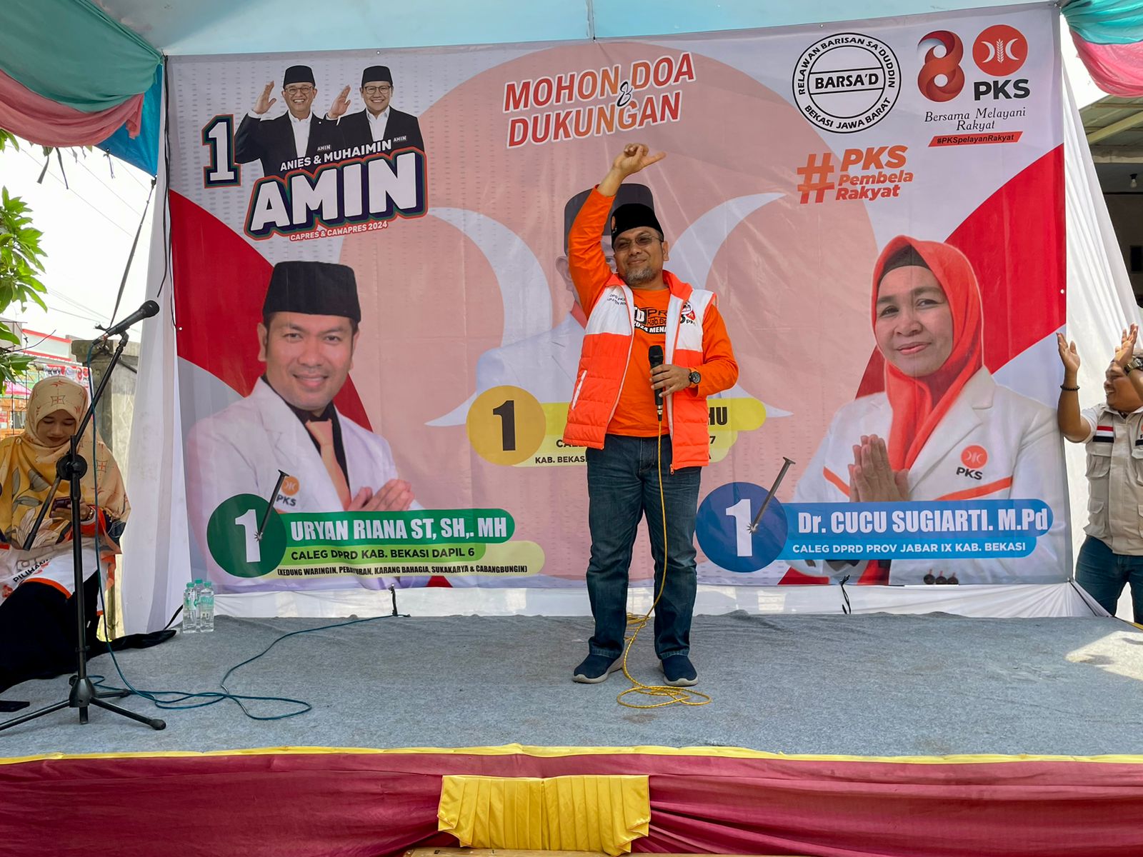PKS Bekasi – Caleg PKS untuk DPRD Propinsi Jawa Barat dari Dapil Jabar lX (Kabupaten Bekasi) nomor urut 1, Dr. cucu sugiarti, M.Pd dan caleg PKS untuk DPRD Kabupaten Bekasi dari dapil VI, Uryan Riana ST, SH, MH meresmikan Posko Pemenangan PKS Kabupaten Bekasi di perumahan Bumi Waringin Indah 1 BLOK D Desa Waringin Jaya, Kecamatan Kedungwaringin pada Ahad (14/1). Uryan mengatakan bahwa sekarang adalah saatnya perubahan, untuk itu dirinya mengajak untuk memilih Anies dan PKS pada Pemilu 14 Februari 2024 nanti.