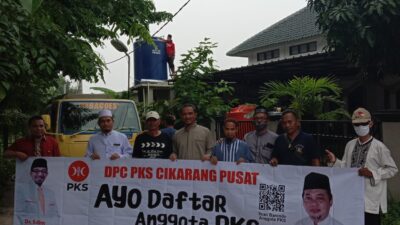 DPC PKS Cikarang Pusat bagikan air bersih kepada warga Perumahan Puri Sentosa Desa Cicau pada…