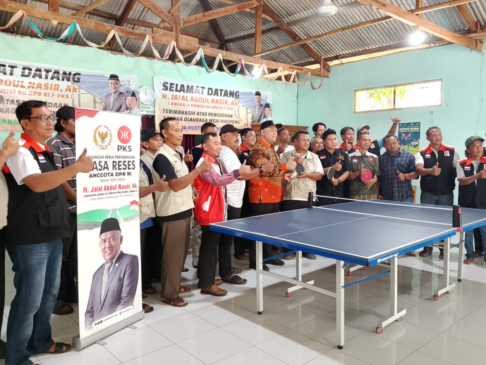 PKS Bekasi – Anggota DPR RI Fraksi Partai Keadilan Sejahtera (PKS), Haji Jalal Abdul Nasir, melaksanakan kegiatan Temu Tokoh dengan agenda serah terima hibah prasarana olahraga berupa meja tenis untuk warga RW 10 Desa Lubangbuaya, Kecamatan Setu, Kabupaten Bekasi, Sabtu (28/12).