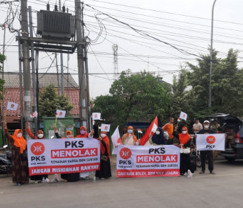 PKSBEKASI – Ketua RKI Cikarang Utara, dr. Feranida terlihat bersama emak-emak kader dan simpatisan PKS Cikarang Utara, melakukan Flashmob Tolak Kenaikan BBM, Sabtu (10/9/2022) pagi.