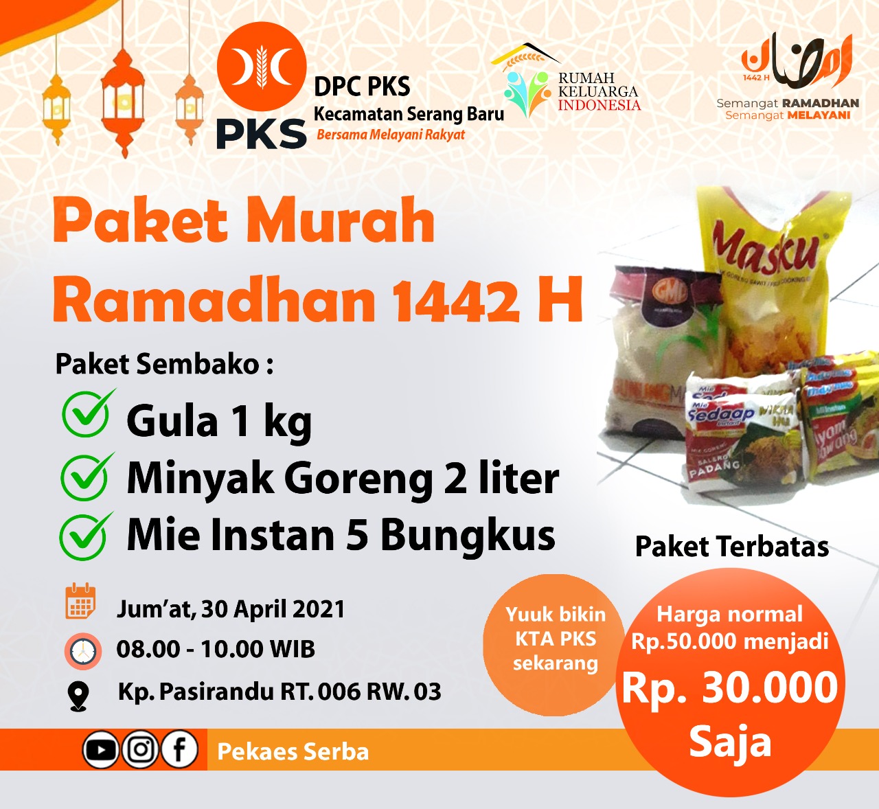 Acara Baksos Ramadhan 1442 H yang di gelar oleh SPKK DPC PKS Serang Baru yang di ketua oleh Nurhasanah menghadirkan seratus warga Kampung Pasir Randu berlangsung tertib dari semenjak dimulai pukul 07.30 sanpai berakhir pukul 09 15 Wib. Turut hadir Ketua DPC PKS Serang Baru Prayono, S.Kom.