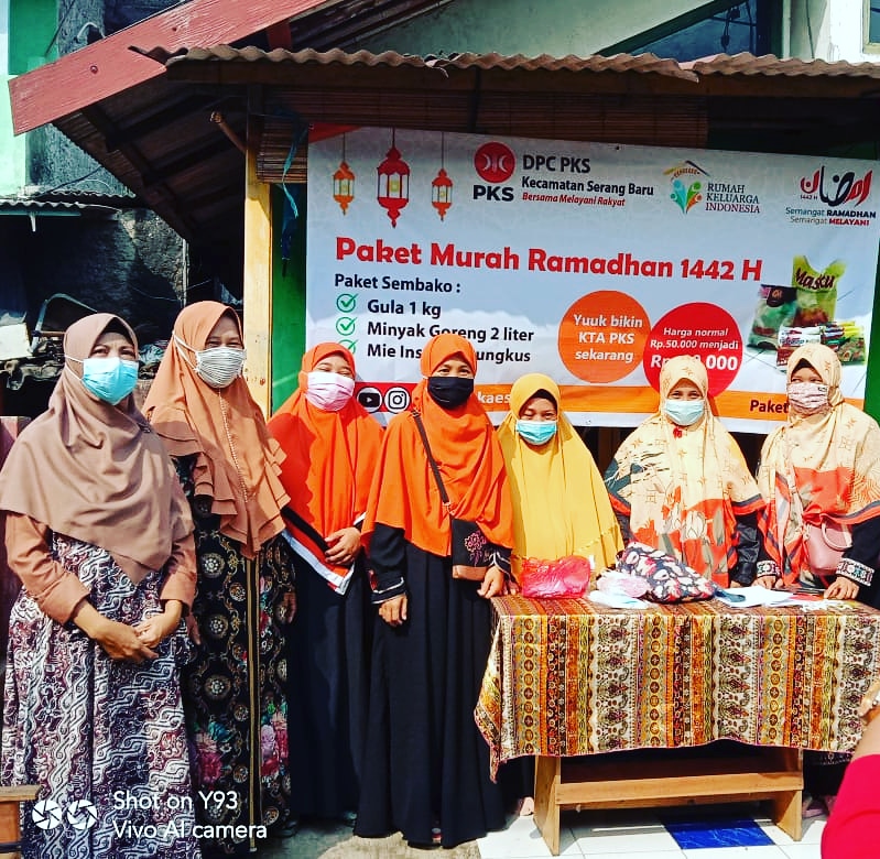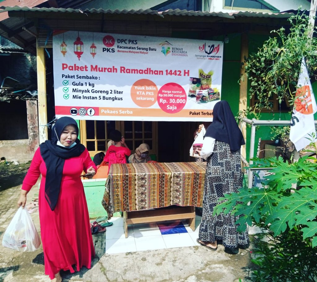 Senyum gembira seratusan warga Kampung Pasir Randu RT 06/03 setelah mereka menerima paket sembako murah dari Seksi Perempuan Ketahana Keluarga (SPKK) Dewan Pengurus Cabang (DPC) Partai Keadilan Sejahtera (PKS) Serang Baru Jumat (30/04/21).